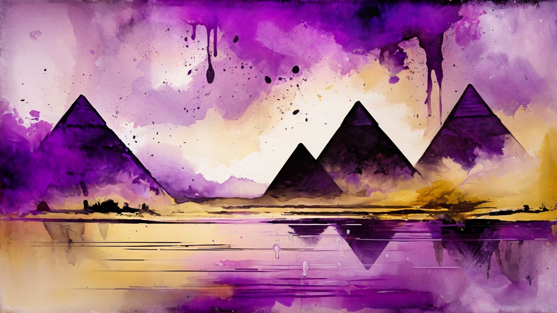 Prompt: "create a dreamy painting of a long forgotten Egyptian past in purple, plum, magenta, light-yellow, khaki, ivory and lavender colors, dreamy atmosphere"