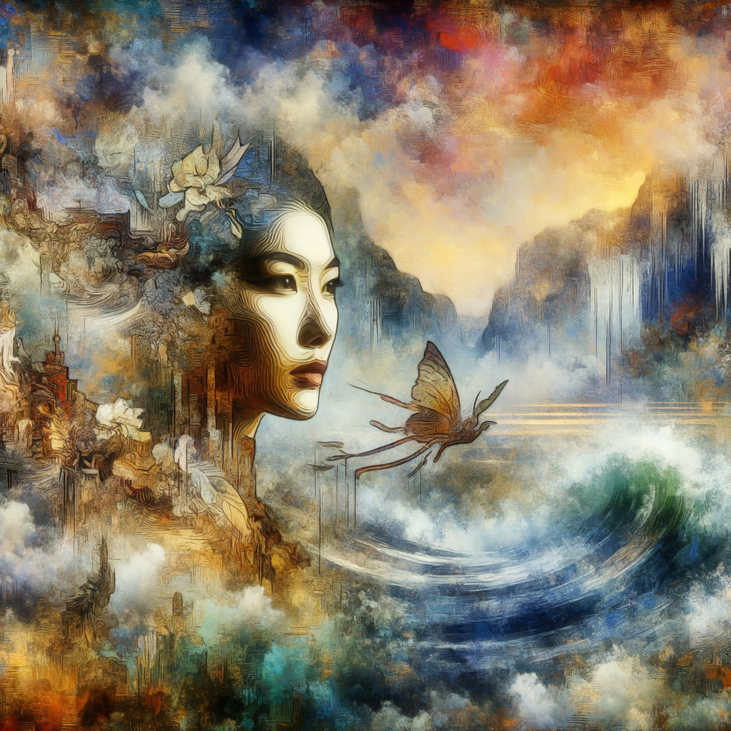 Prompt: "The past is pulling me back, beautiful lady. A breathtaking watercolor and ink masterpiece comes to life in a dreamlike landscape. The scene is a fusion of mesmerizing fantasy visions from Kiki Smith, Glenn Murcutt, Charles Rennie Mackintosh, Jamie Hayden, Henry Moret, Scott Naismith, Pierre Bonnard, Charles Maurice Detmold and William Timlin. The award-winning composition incorporates mixed media elements and 3D modeling adding depth of field, 32k, insanely complex detailed images."