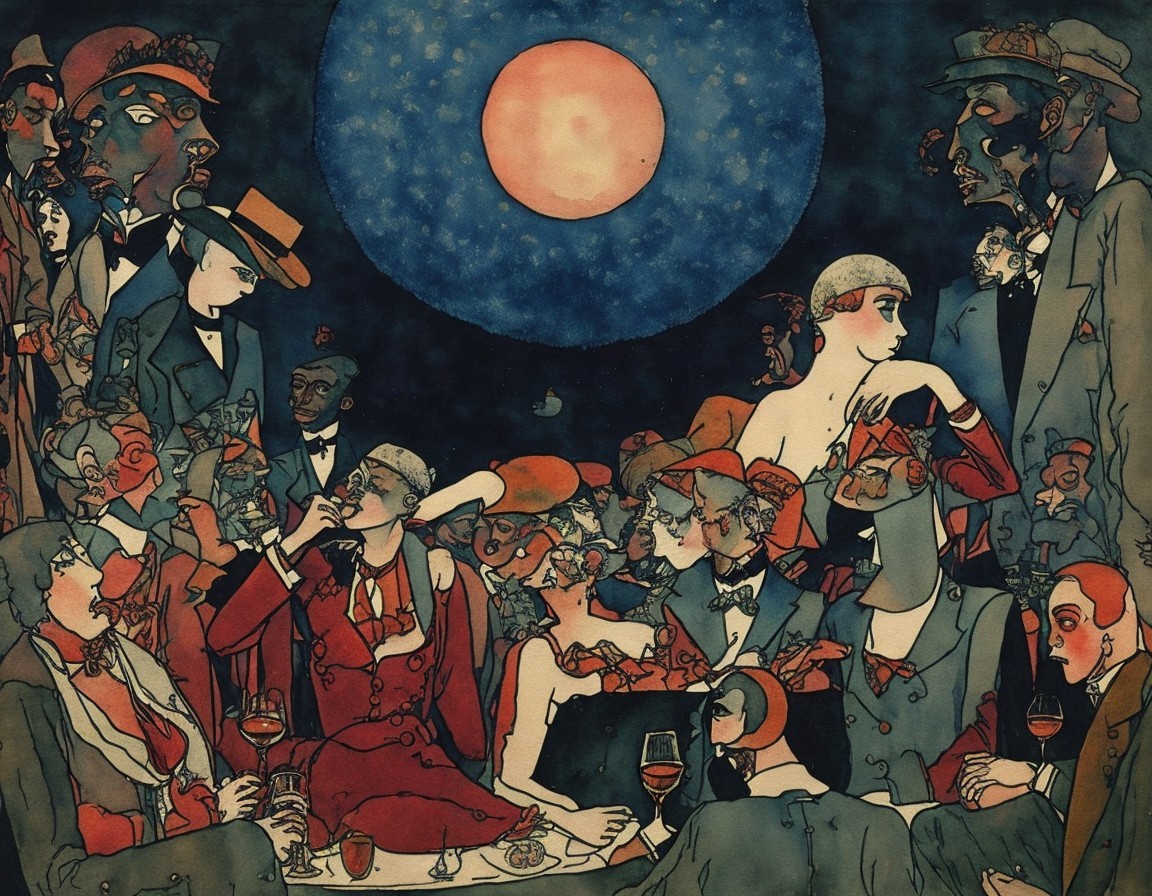 1920s Soirée Under Vibrant Orange Moonlight