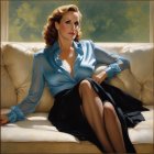 Prompt: Long, flowy blown out blonde hair, Jane Sibbett fused with Elizabeth Mitchell face. Oblong shaped head, angular jawline, defined facial bone structure, wide mouth, visible lines around mouth.