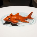 A white plate displays vibrant slices of plum along with curled dried skin, showcasing a rich blend of deep red and orange hues, elegantly arranged for a minimalist aesthetic.