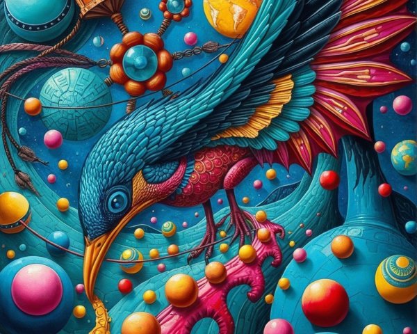 This vibrant mushroom landscape features hyper-detailed textures and intricate motifs, blending abstract expressionism and surrealism with colorful alcohol ink techniques for a mesmerizing visual experience.