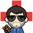 The image features a cartoonish character with sunglasses and a beard, wearing a blue shirt. He holds a box, set against a vibrant blue background with stylized rays.