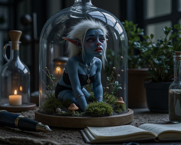 Prompt: "back view woman in colorful summer dress and man in jeans and t-shirt witness a flying saucer UFO landing at night in the desert; alien silhouette in light beam"