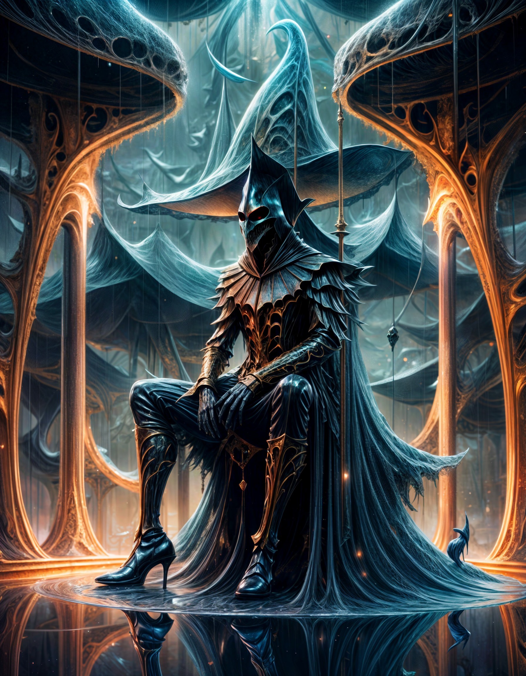 A majestic figure in ornate, gleaming armor stands in a grand, luminous hall, exuding an aura of power and regality.