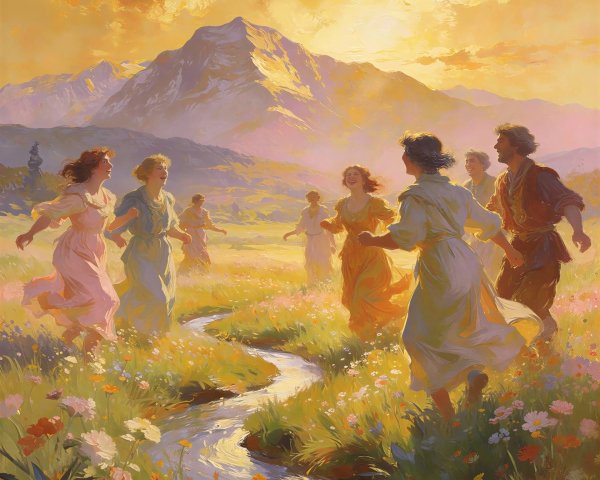 A serene watercolor landscape featuring soft blue mountains under a full moon, with a tranquil river and trees framing the scene, evoking a peaceful and contemplative atmosphere.
