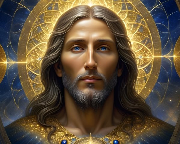 A vibrant kaleidoscopic design features geometric shapes and lush nature. Central light radiates warmth, surrounded by intricate patterns, trees, and sparkling elements, evoking a surreal dreamlike atmosphere.