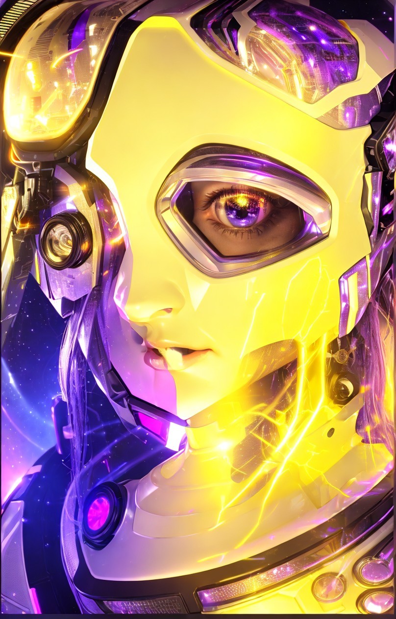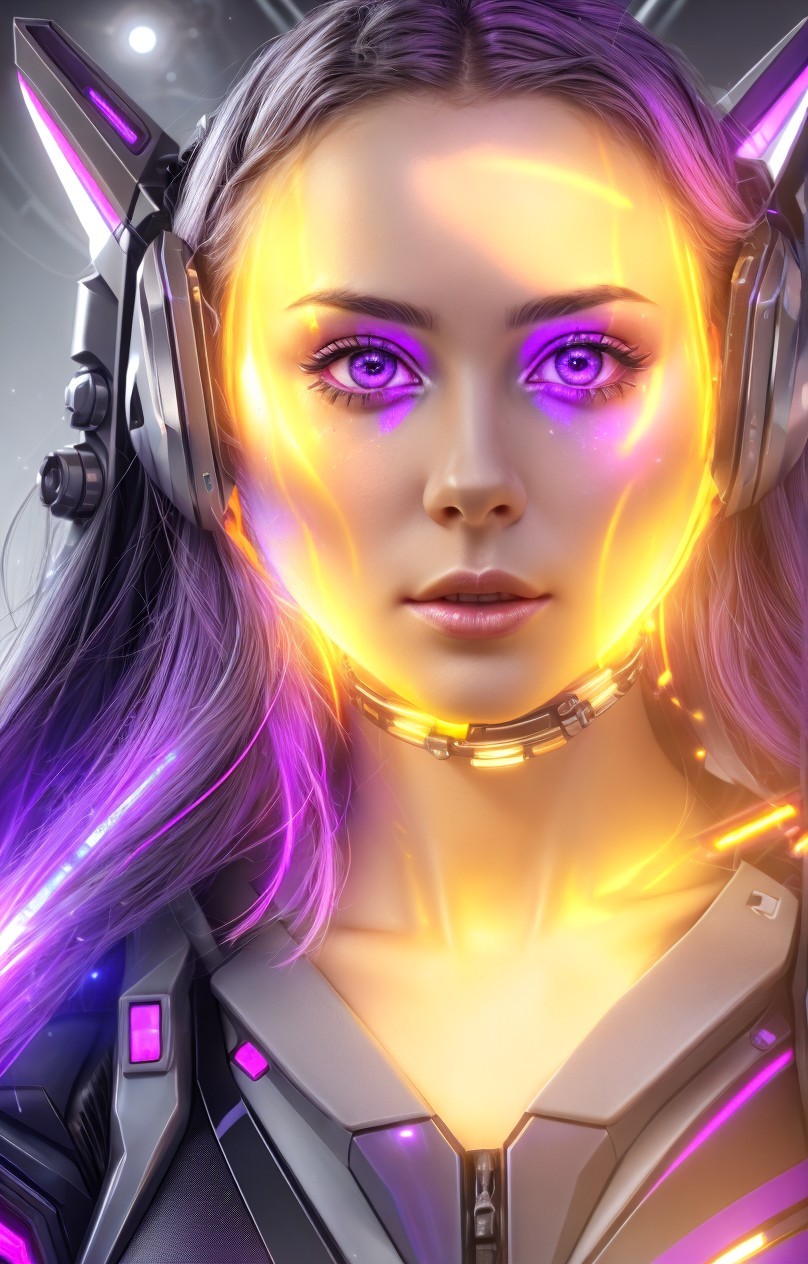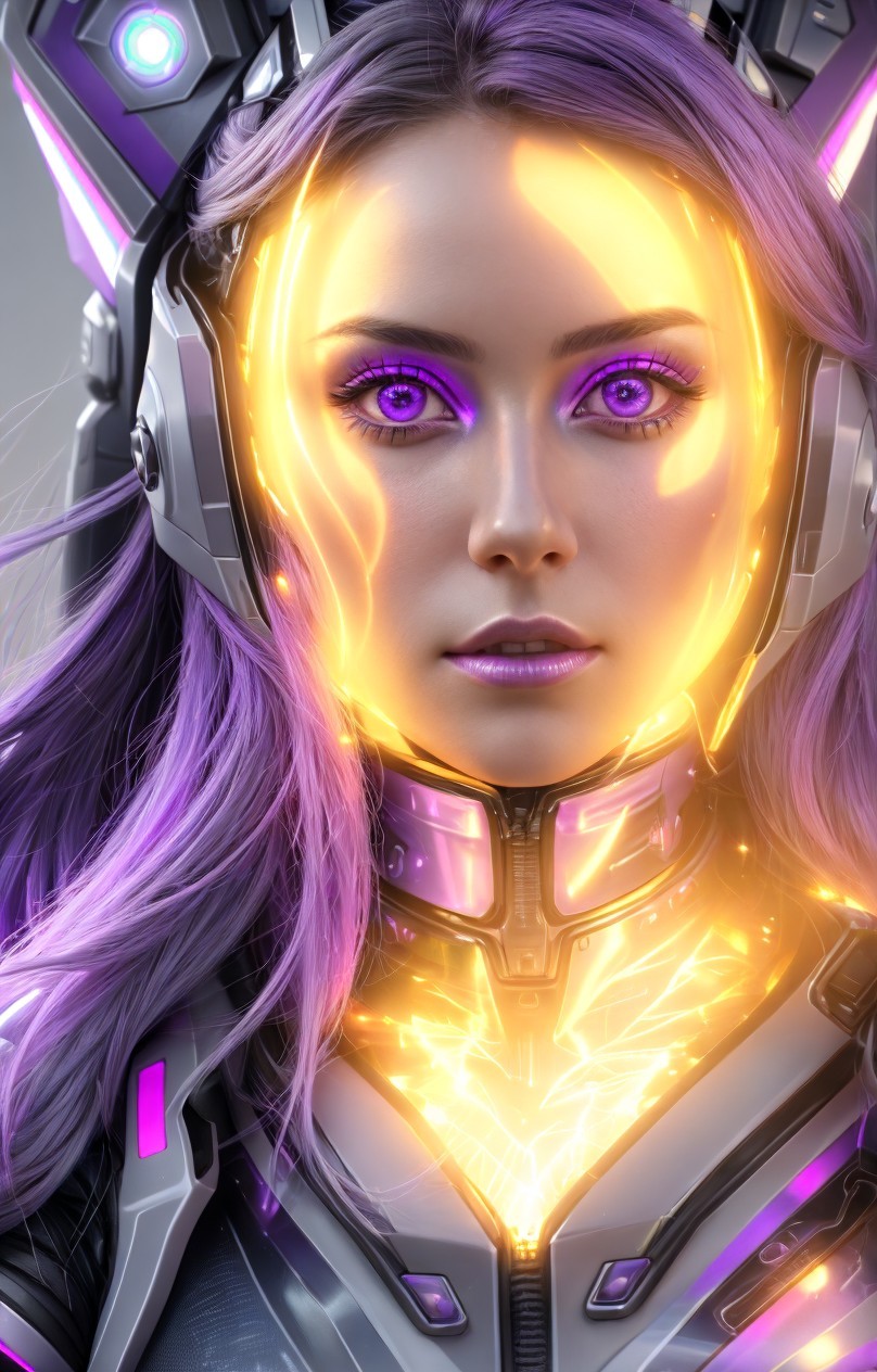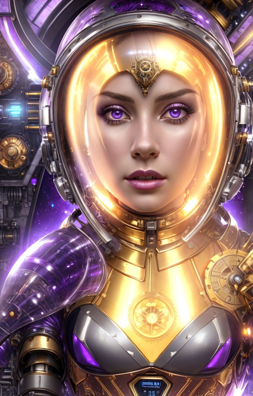 Fantasy movie still, beautiful female in synthetic space suit, beautiful female face, upper body portrait, sci-fi illustration, intricately detailed, hues, atompunk background of boilers, tubes, clocks, cogs with lilac metallic and chromium gears, tubes, tinc contraptions, gilded brass, copper ornamental details, maximalism, triadic color scheme purple silver grey, Colors in a purple to blue range. Neon art, luminosity 1.3, plasticity 1.6, iridescent fine streaks of pink electrical lightning, eroticism, grey lighting background, dynamic lighting, sharp focus, vector 9:5, metallic colors, atompunk illustration 1.4 (stylized lineage illustration, (gothic horror (0.8) glossy highlighted reflections, vector 9:7, hues, cyborg details, cyborg features, devilish eyes,) dynamic lighting) 6:11), plushy lighting, tints of 1970s advertising art, clockpunk style, heroism, muscular, highly detailed ornamental features, dynamic lighting 1.7, 3d effects 1.8, chiaroscuro lighting, plasticity 1.6, illustrative maximalism fantasy artwork, brightness 1.4, highly detailed, rim lighting, golden ratio, ambient occlusion 1.5, custom_loss: edge, edge_color grey, acid spill, cottagegore 1.7, atompunk 1.7, shadow mapping 1.3, triadic color scheme purple yellow grey, raytraced shadows 1.8, Streamline_Moderne, tints of space age style, layered geometrical vector art, geometrical illustration 1.8, brushed textures, brightness 1.4, ethereal, otherworldly, abstract, coherent, synthetic, grain, tints of Streamline_Moderne intertwined with movie poster art