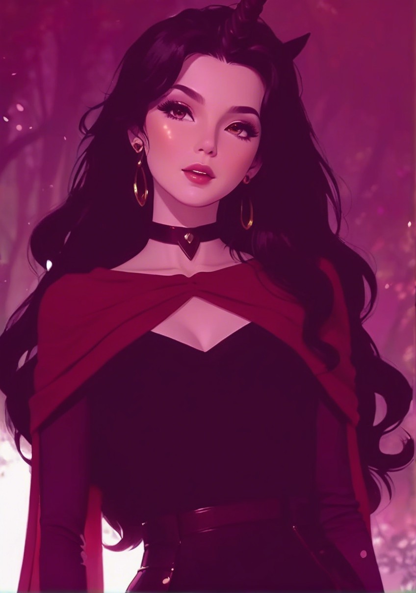 Detailed gothic elements, smooth dewy complexion, Other-worldly beauty & mystique