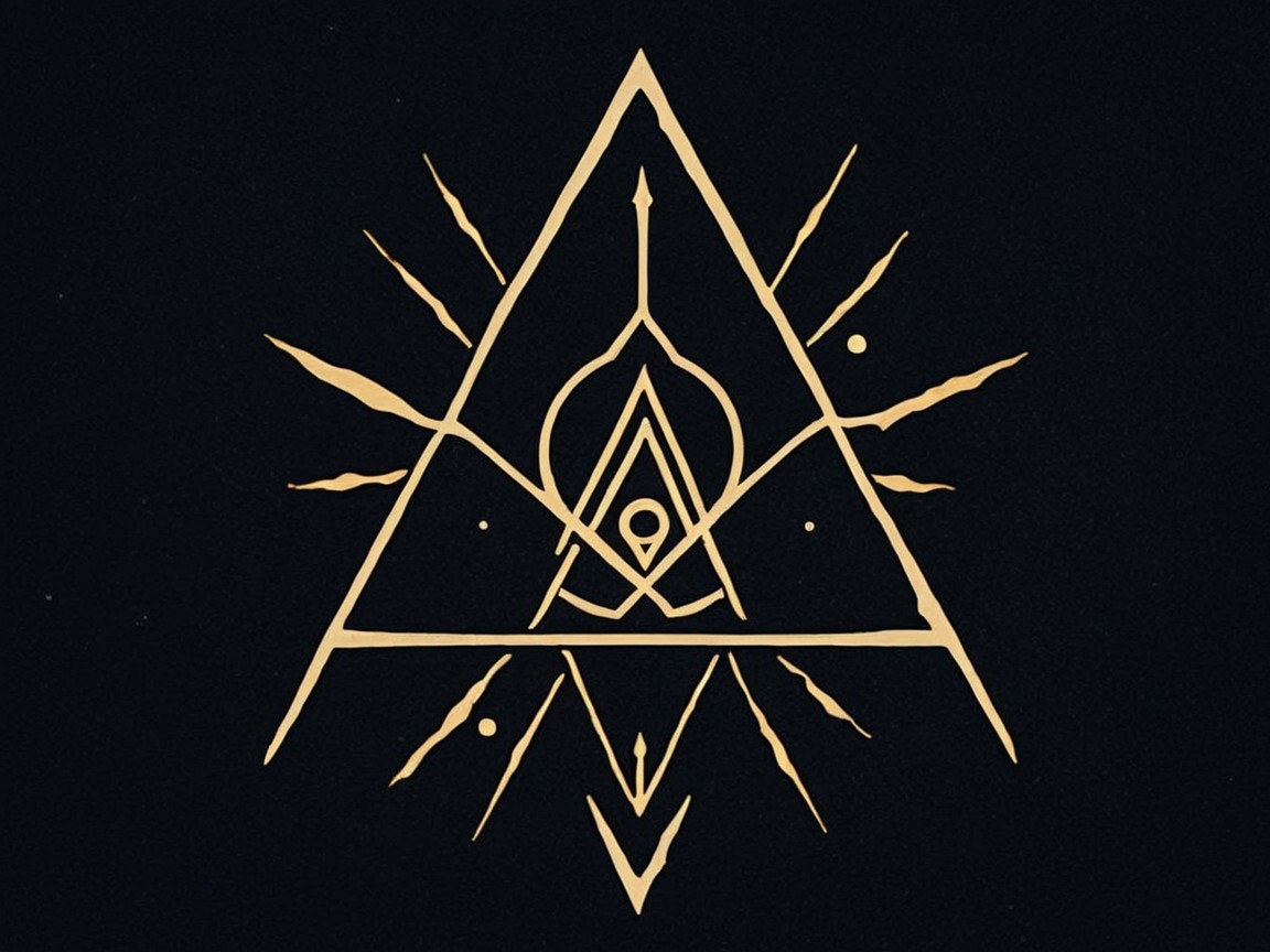 The image features a geometric design with a prominent golden star inside a circular emblem. It combines mystical symbols, including an eye, creating an intricate and enigmatic appearance.