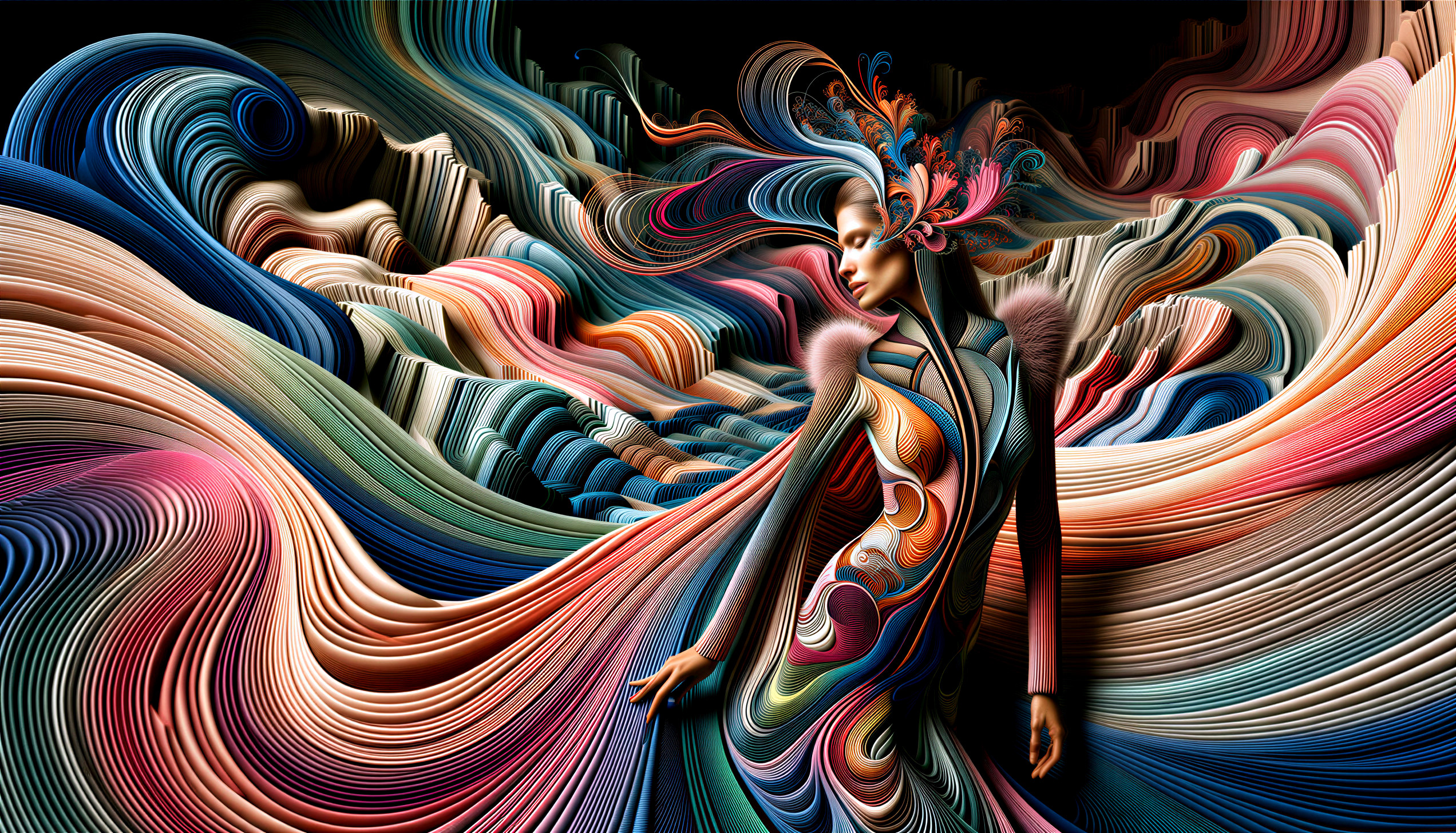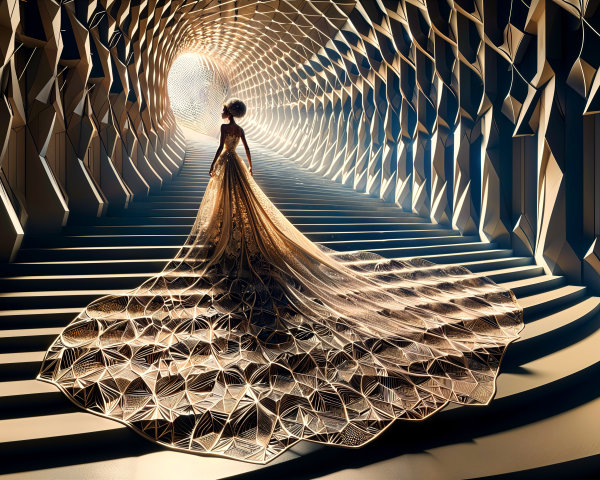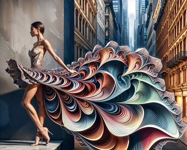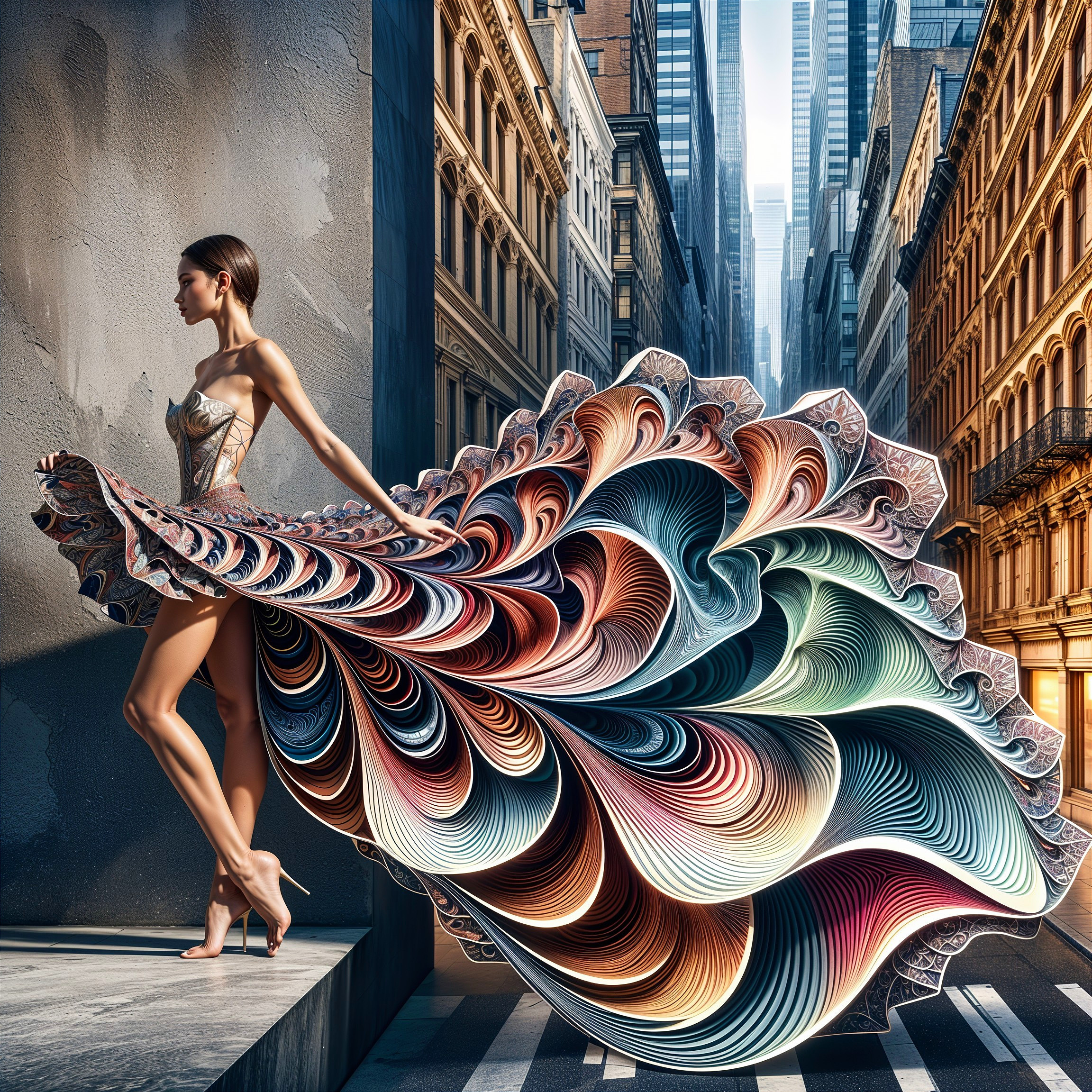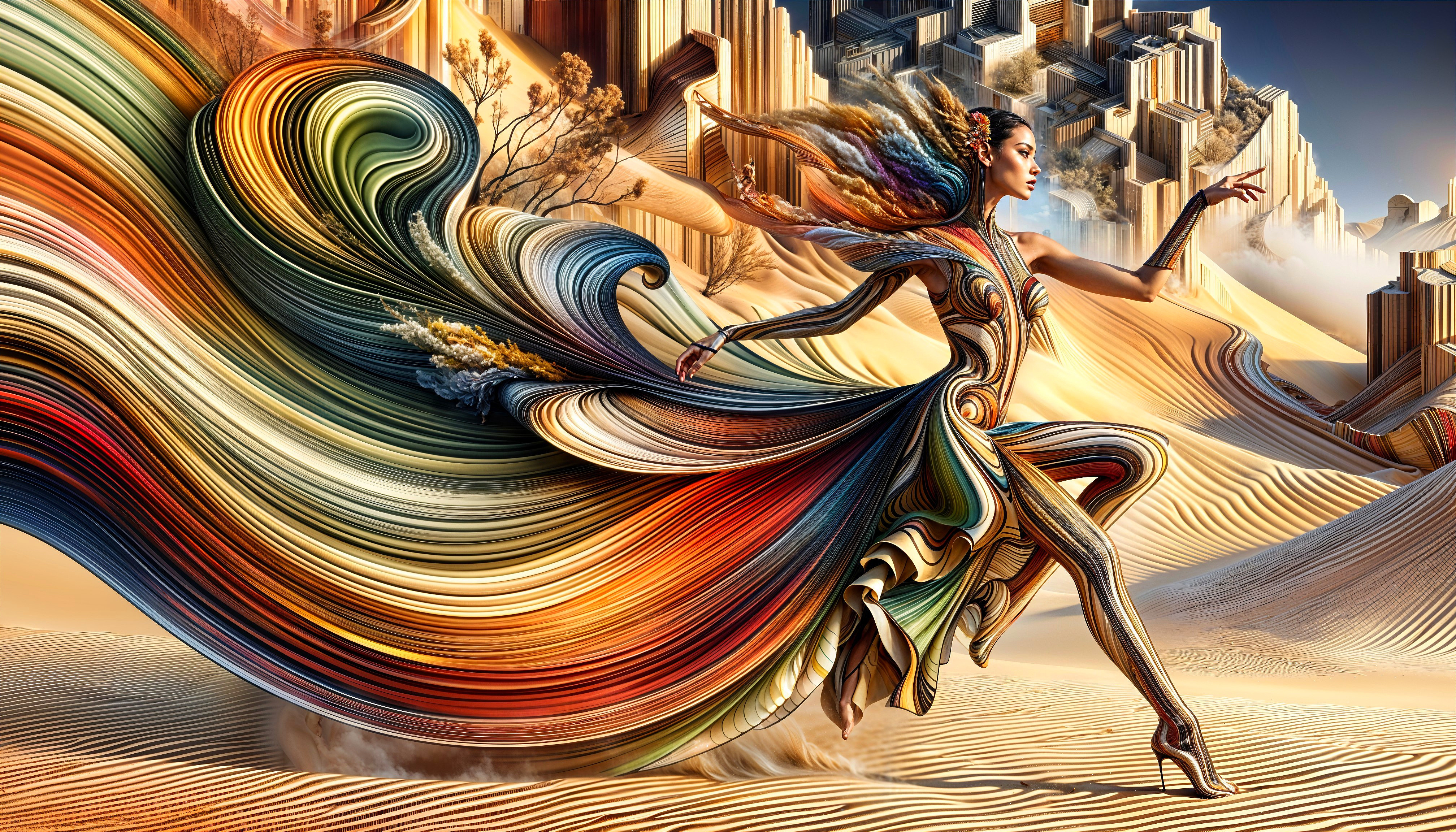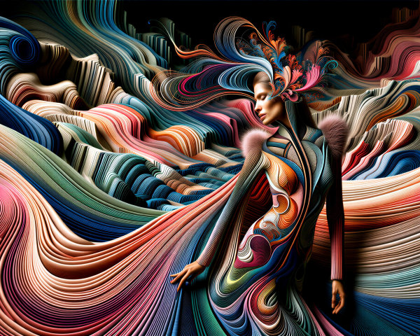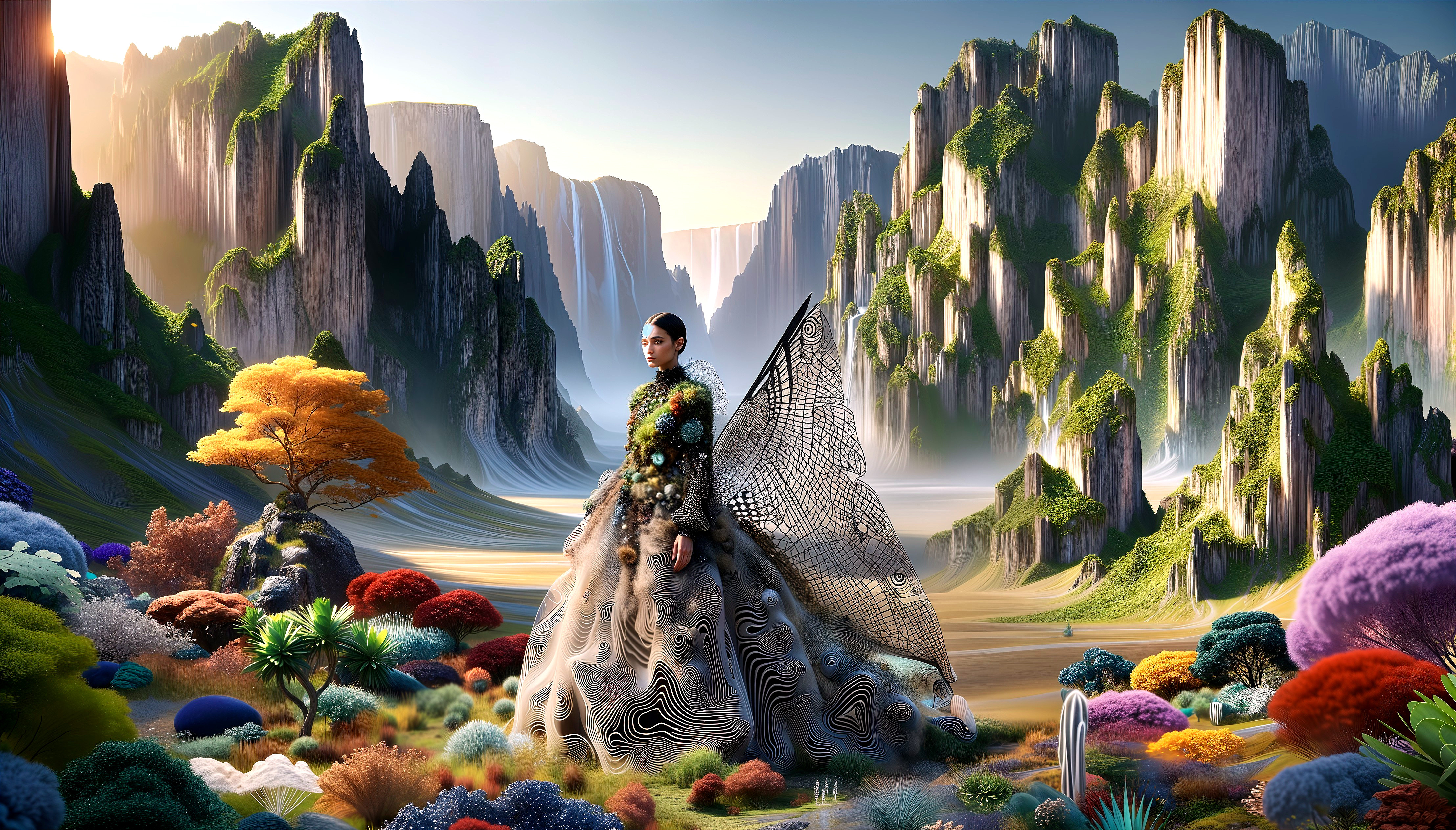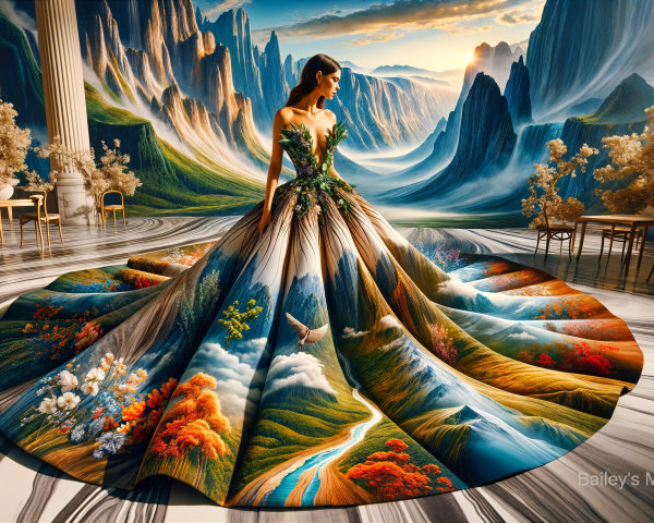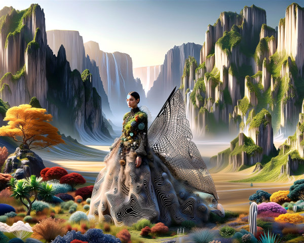 Prompt: Hyper detailed, intricate, immersive intersect ion of super realistic detailed breathtaking scenery, expansive sublime surreal fashion that is the actual scenery worn by a model, based on future high fashion technology & the visionary genius of fashion icons and tech gurus, the gorgeous model is amid natural scenic landscapes, she wears a 3d topographic expansive gown that is itself made of 3d scenery that ties into the landscape, the landscape elements and dress are mountains, valley, rugged terrain, gorgeous flora, all interweaved yet the avant Garde gown is structurally fitted as beautiful fashion and the model is immersed in a stunning location, collaborative work of art, technology, they are each gorgeous destinations & creations that fuse into a transcendent masterpiece of scenic textiles, fashion is both a location and a form of worn art, unconventional , in the collaborative & mind blowing styles and expertise of Yves St.Laurent, Christian Siriano, Valerie Lamontagne - (AMFI) & 3lectromode, Sahrye Cohen - Amped Atelier, Vladimir Fedotko, Kenzie Housego - Phi Illuminated Designs, Neri Oxman - MIT Media Lab, Christo and Jeanne-Claude, Steven Spielberg, Vogue Fashion, National Geographic, Cyril Rolando, Microsoft,, Steven Meisel Teruya; Steve McCurry , caspar david friedrich, Jacek Yerka Hyper quality, magic hour, wide angle, 32k 500 plx, Vladimir Fedotko,,beautiful expressive face, realistic wide-set eyes, fwell-lit face, windy, mysterious, earthy, vivid, Abstract Neoralism, cinematic, Film light, Hyper detailed, Hyper realistic, masterpiece, atmospheric, High resolution, Vibrant, 8k, HDR, 500px, FUJIFILM,
