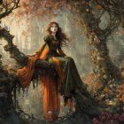 A bar scene featuring two elegantly dressed characters in front, with a woman in a red robe playfully touching a man’s face. In the background, two other figures observe, creating an intriguing atmosphere.