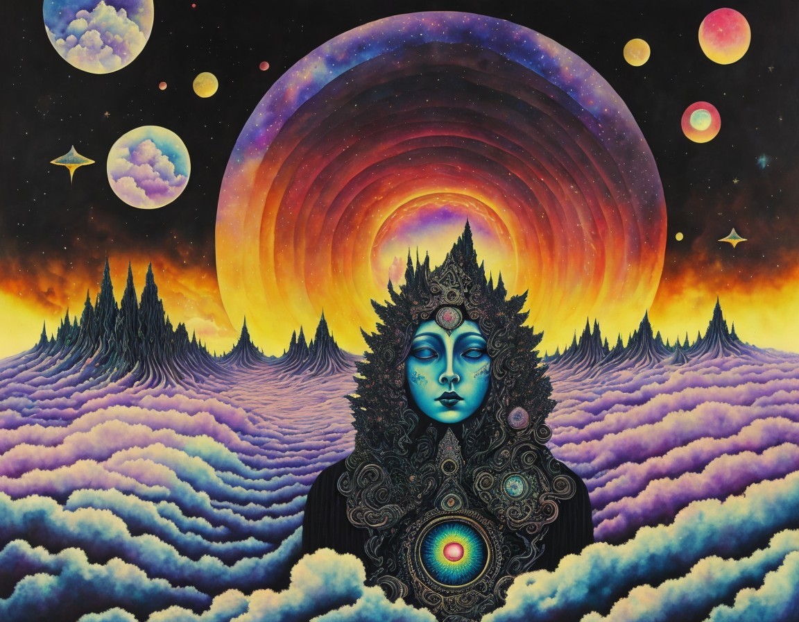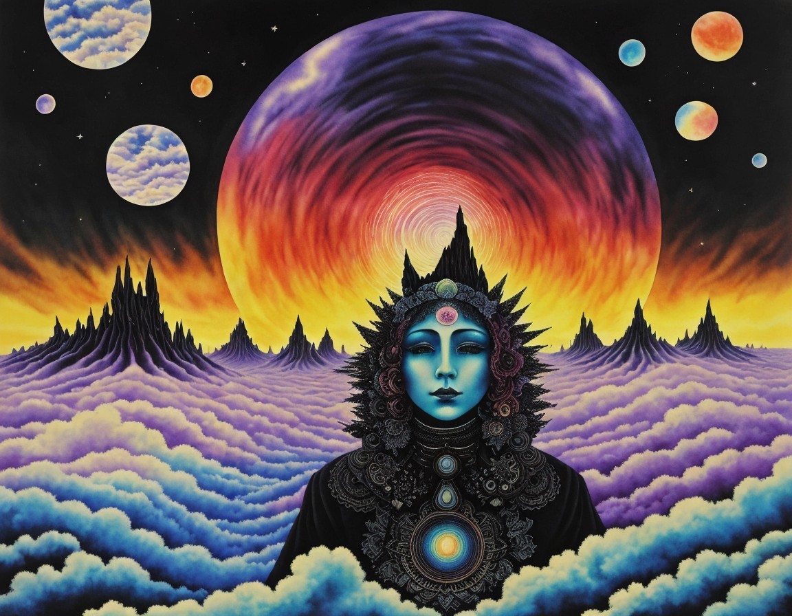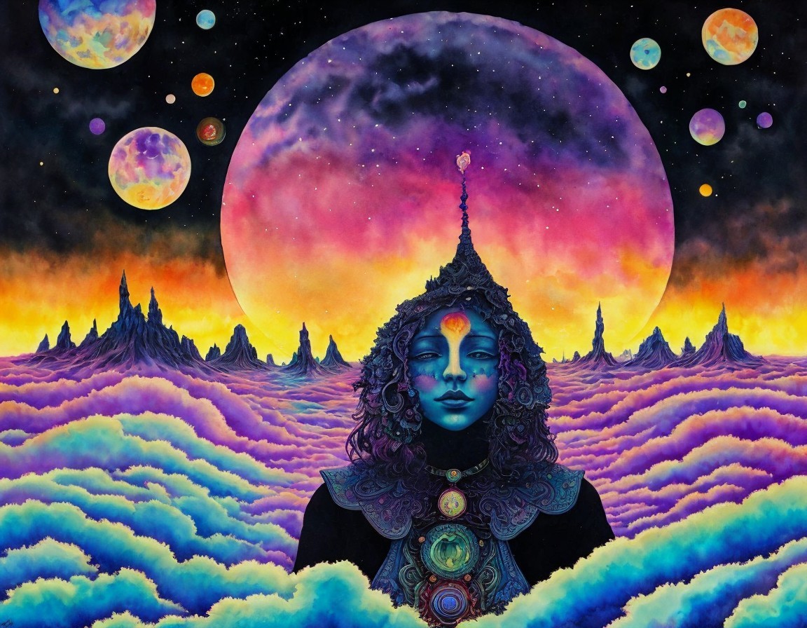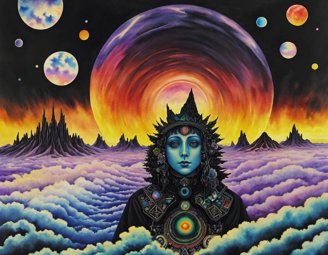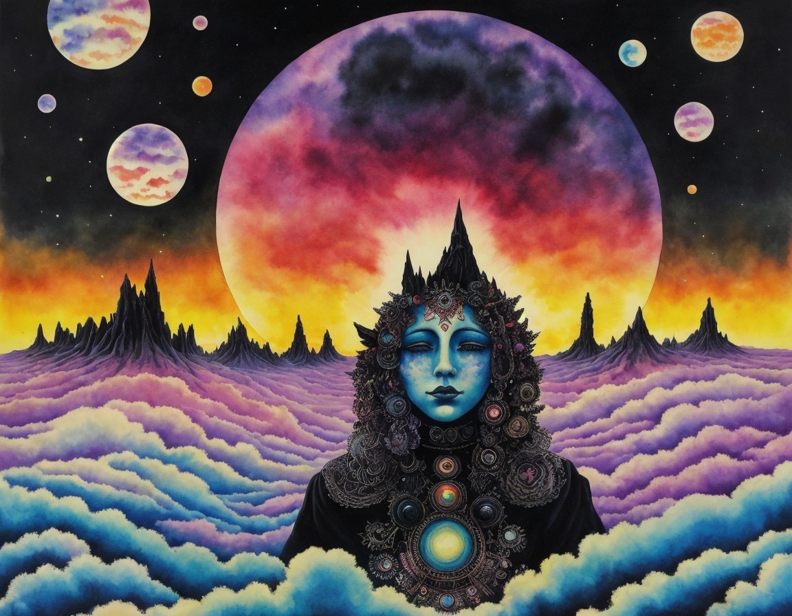Surrealism, psychedelic, watercolour on black ink drawing, magic, lsd, hipie, occult, weird, whimsical