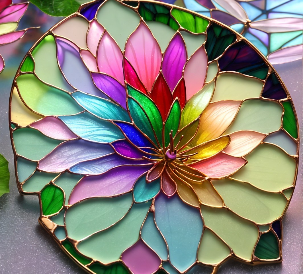 Colorful Floral Stained-Glass Art: Multi-Layered Lotus Design
