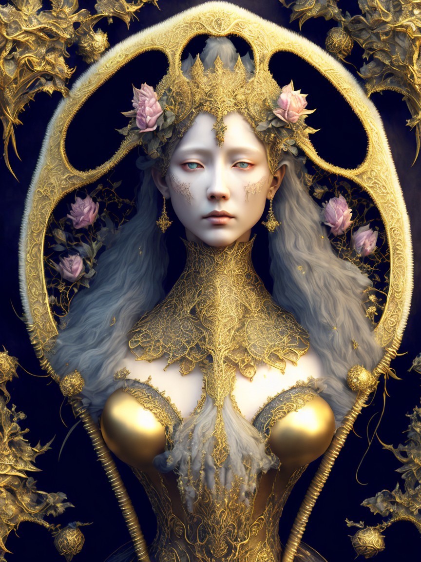 Prompt: "portrait in the style of Albrecht Durer and Hieronymus Bosch, , ethereal beauty, intricate porcelain features, intricate gold accents, mesmerizing fractal designs, hauntingly elegant, dark aesthetic, emotional depth, insanity-themed, dramatic portrayal, evil and despair elements, fairytale creatures, fantasy realm, detailed fantasy art, digital illustration, high-resolution, dark color palette with hints of gold, purple, and black, mystical lighting,"