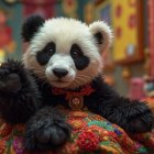 A futuristic robot in a sleek white and black design kneels in an urban setting, illuminated by vibrant neon lights. Its mechanical limbs are adorned with glowing accents, emphasizing its advanced technology.