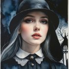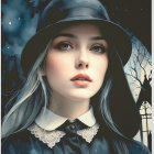 Portrait of a Young Woman in Vintage Gothic Attire
