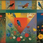 Vibrant Mosaic of Birds and Flowers in Abstract Design