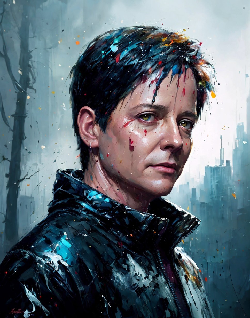 Prompt: "Michael J. Fox ; [151515:Speedpaint with mixed brush strokes size by Junji Ito; robert oxley! Ismail Inceoglu; Gazelli; M.W. Kaluta; richard anderson; paint splatter; paint drips; drip painting; a masterpiece; 8k resolution; trending on artstation; maximalist; uncanny; Holi]"