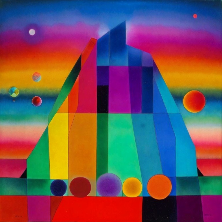 Colorful Geometric Triangle Painting on Vibrant Striped Background