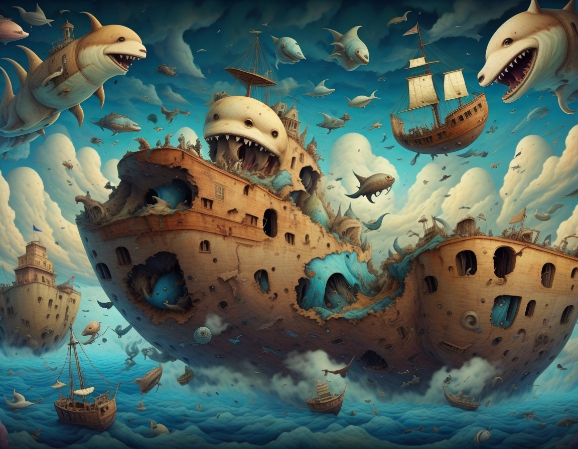 an extremely surreal image running through my head of grotesque, never-before-seen animals sinking ships in bent space and disintegrating time