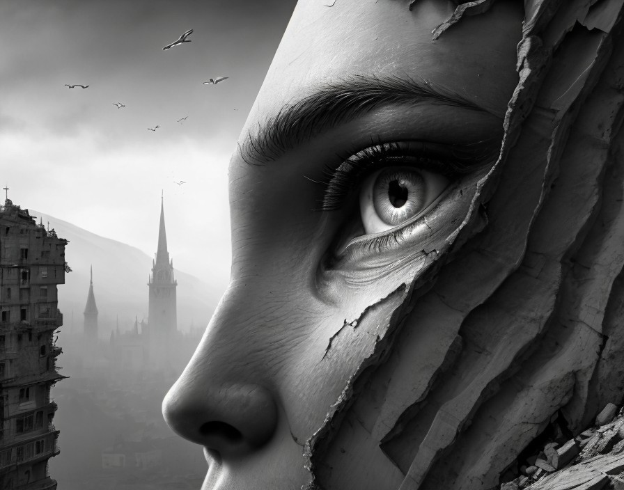 Prompt: "Under Reconstruction; highly detailed digital painting in the style of Loui Jover, Zdzisław Beksiński, Lee Jeffries, and Bryan Larsen, perfect beautiful realistic all seeing EYE embedded in the, scaffolding. Landscape, cracks, fissures, weathered ancient stone, with architectural markings throughout by Gerald Festus Kelly, Lexy Parks, colorful, cinematic, 4k, epic , sharp focus, diodes, smoke, sparks, motherboard, ladders, branches, clouds of steam, by Gediminas Pranckevicius, artstation, hyperrealism, painting, concept art of detailed character design, matte painting, 4 k resolution,"