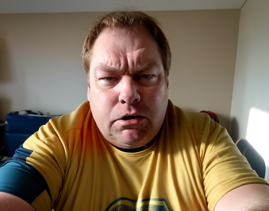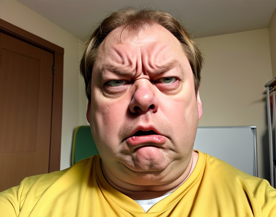 Man with Disgruntled Expression in Yellow Shirt Indoors