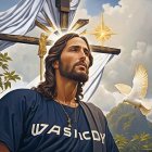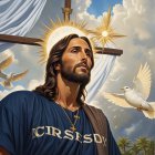 Regal Jesus Christ in Blue Robe with Dove and Halo