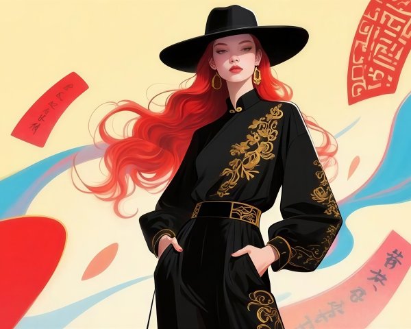 A girl in a bright red cloak stands in a forest, facing a large, menacing wolf. The scene is stylized with bold colors and a whimsical, fairy tale atmosphere.