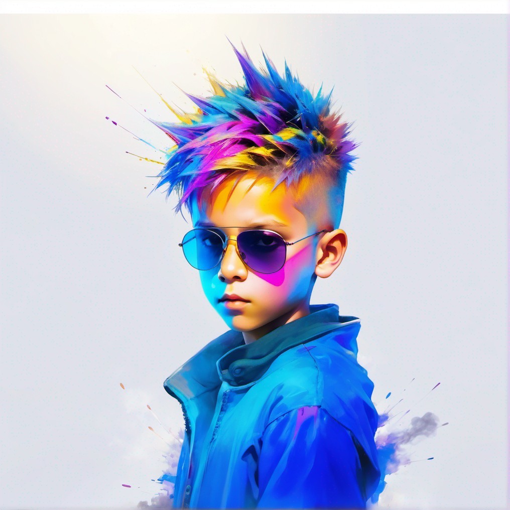 + Prompt:little boy with sunglasses and short spiky hair, holi festival colors, wrapped in dark glowing oil floating in outer space, ethereal background, abstract, explosive volumetric smoke, approaching perfection, boy, golden ratio, minimalistic, unfinished, concept art, by Carne Griffiths and Wadim Kashin, ominous, matte painting movie poster, golden ratio, trending on cgsociety, intricate, epic, trending on artstation, by artgerm, h. r. giger and beksinski, highly detailed, vibrant, production cinematic character render, ultra high quality model