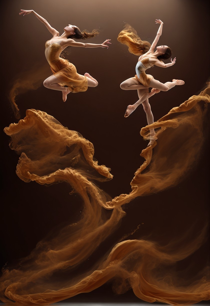 + Prompt:Highest resolution illustration of a leaping ballerina with a detailed beautiful face and sparkling amber eyes and white skin made out of smooth porcelain, dissolving and Morphing completely into swirling dust, volumetric dust, wide view with violins and a piano in the background, very hot air, Shimmering heat, sepia tone, puffy clouds, detailed particles, extreme swirling dust, cinematic lighting, close up portrait, cel-shaded, golden ratio, 8k, highly detailed, realistic, extremely high quality, RAW photograph ultra-sharp, highly detailed, high resolution, masterpiece, best quality, ultra-detailed 8k wallpaper, extremely clear, sepia tone, 3D image