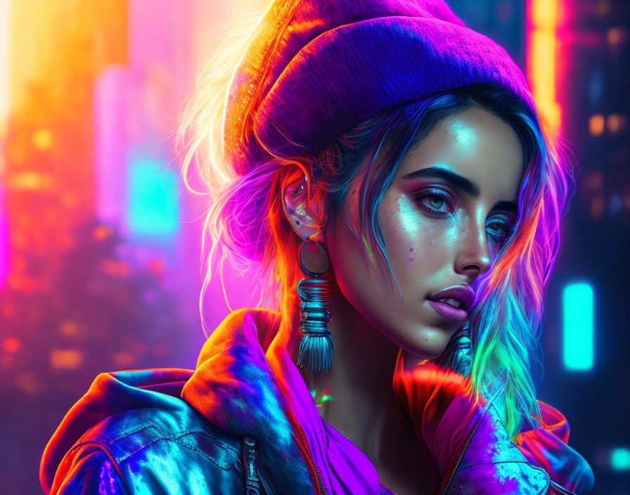 Long shot, detailed digital painting of Ana de Armas in rags in a cyberpunk setting.