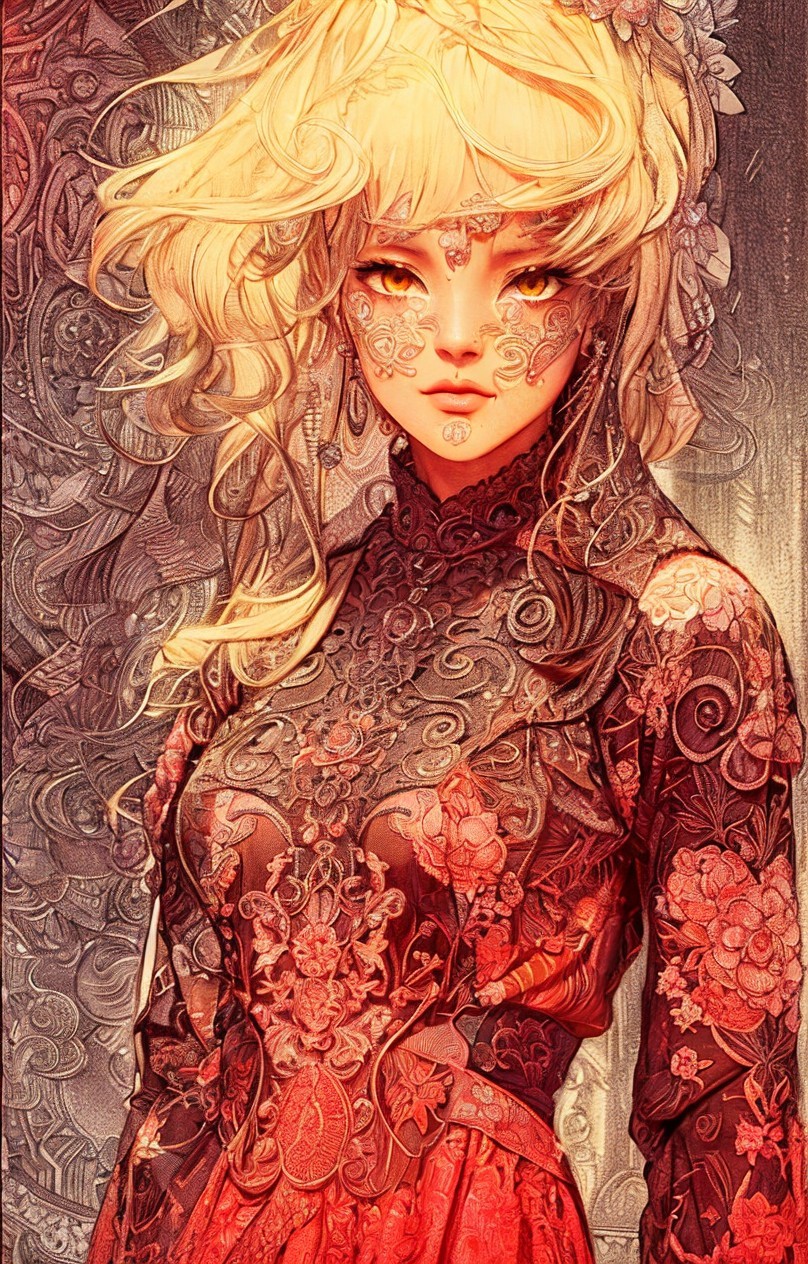 Pencil and charcoal sketch, fine intricate lines, luminous full body portraiture, anime style, triadic color scheme beige brown yellow, stylized lineage illustration, brightness 1.4, ambient occlusion 1.5, shadow mapping 1.3, dynamic lighting 1.7, intricate details, octane render illustration, style by Edward Hopper, brightness 1.4, shadow mapping 1.3, tints of 1950s book cover art, detailed ornamental lineage, ambient occlusion, hues, plasticity 1.6, complexion, radiance, biomorphic details, vibrant colors, high contrast, pale background colors, fauvistic cuts