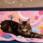 Maine Coon Cat in a Dreamlike Floral Landscape