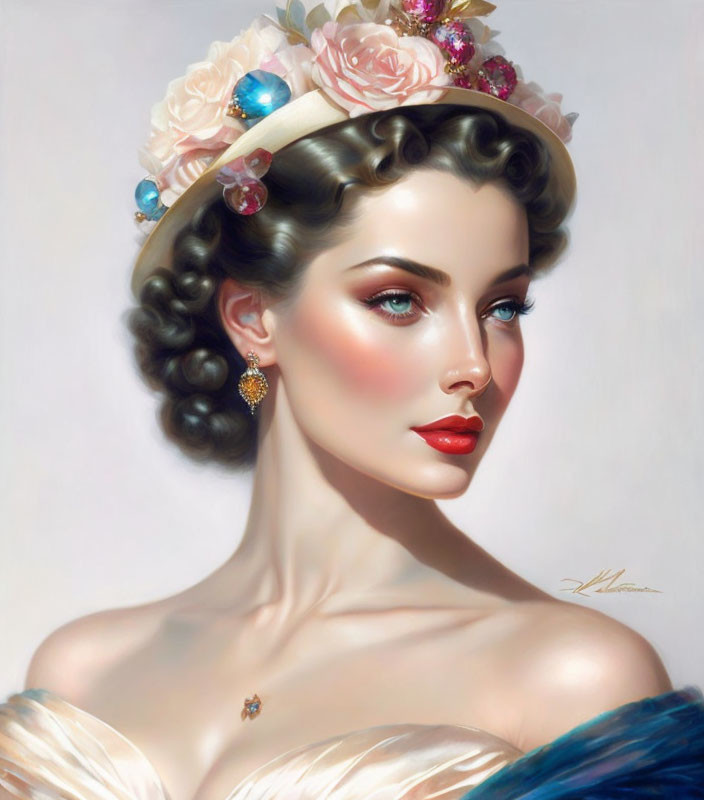 Material Girl. Diamond necklace, crown and earrings. Lots of bling.