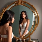 Elegant Woman in Vintage Mirror with Soft Lighting