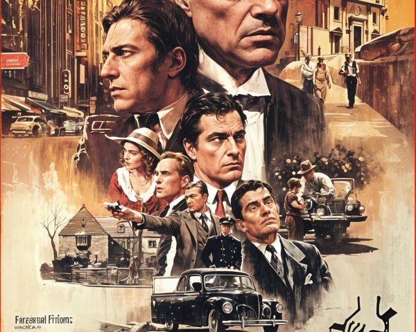 Digital Artwork: Romantic Couple with Orange Roses in Vintage Attire