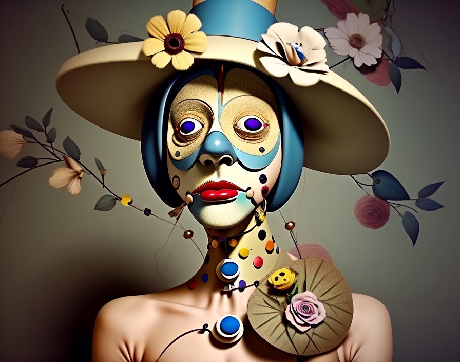 Surreal Clown Illustration with Bold Colors and Details