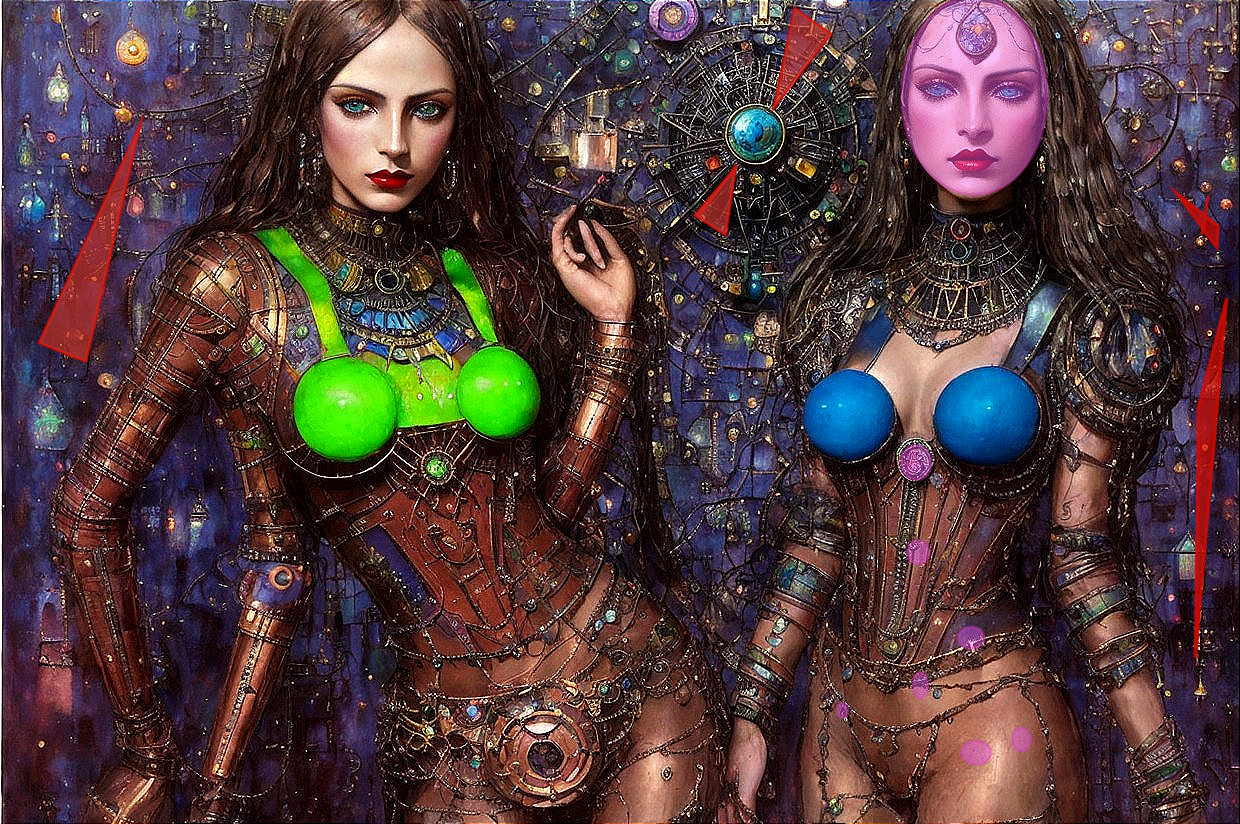 + Prompt:android fantasy: witches made out of metallic circuits and scrap, Surrealism,
