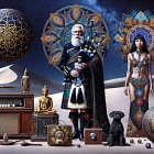Mystical Scene with Musicians in Surreal Landscape