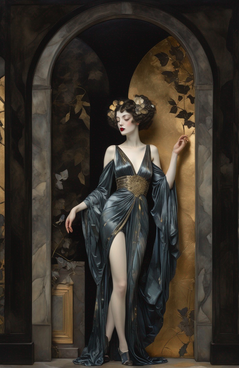 Art Nouveau Illustration of Woman in Dark Dress