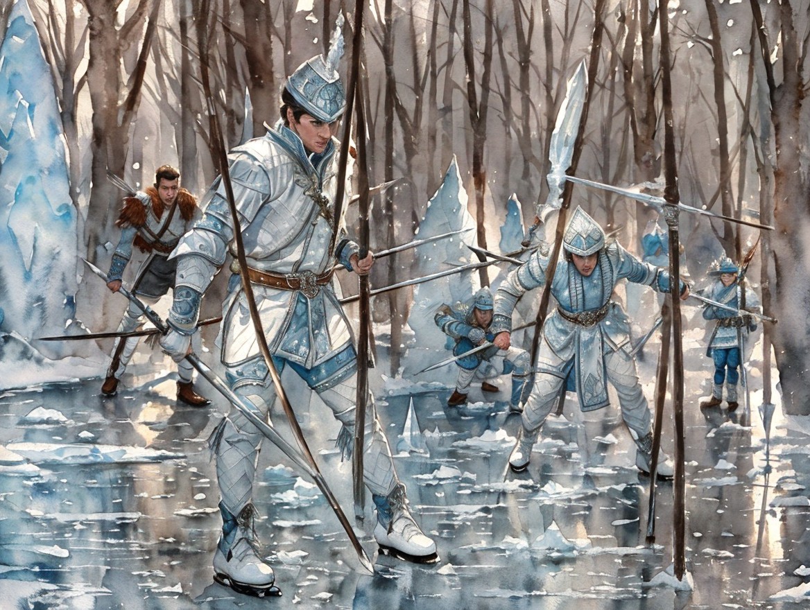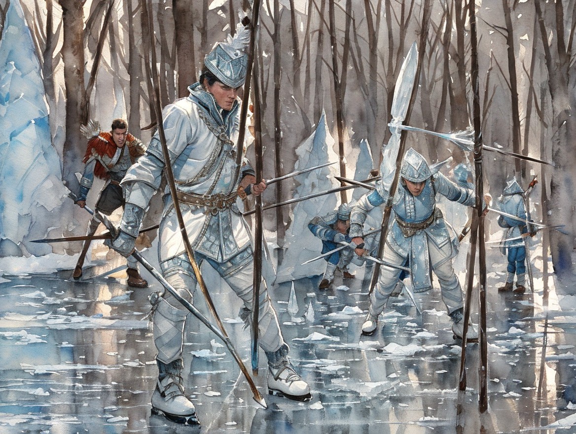 The ice men with the long spears are preparing for... fight... no, for the festival. ;-)
