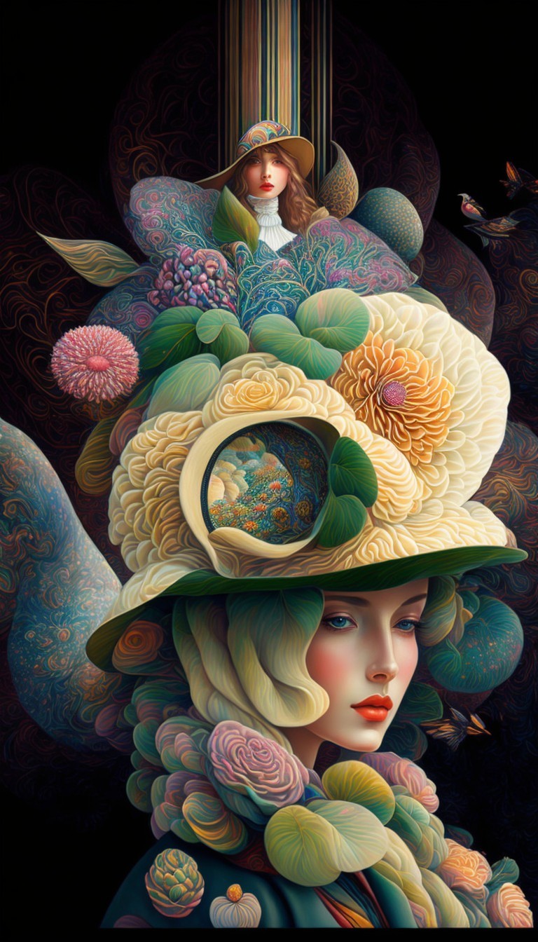 + Prompt:Beautiful girl in hat and coat integrated with surreal surreal surreal Fibonacci landscape plants::in surreal styles from Van Os, Dadd, Rousseau, Okeeffe, Klimt, Utrillo