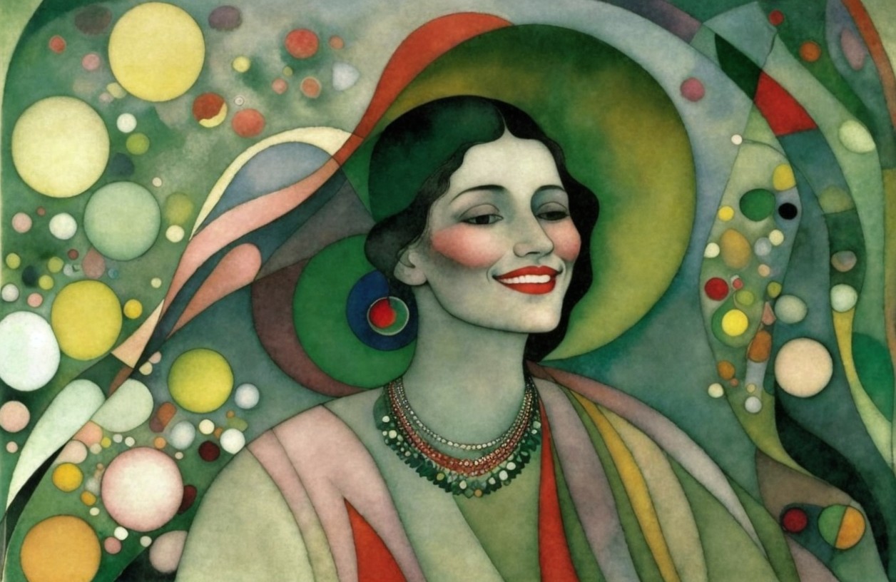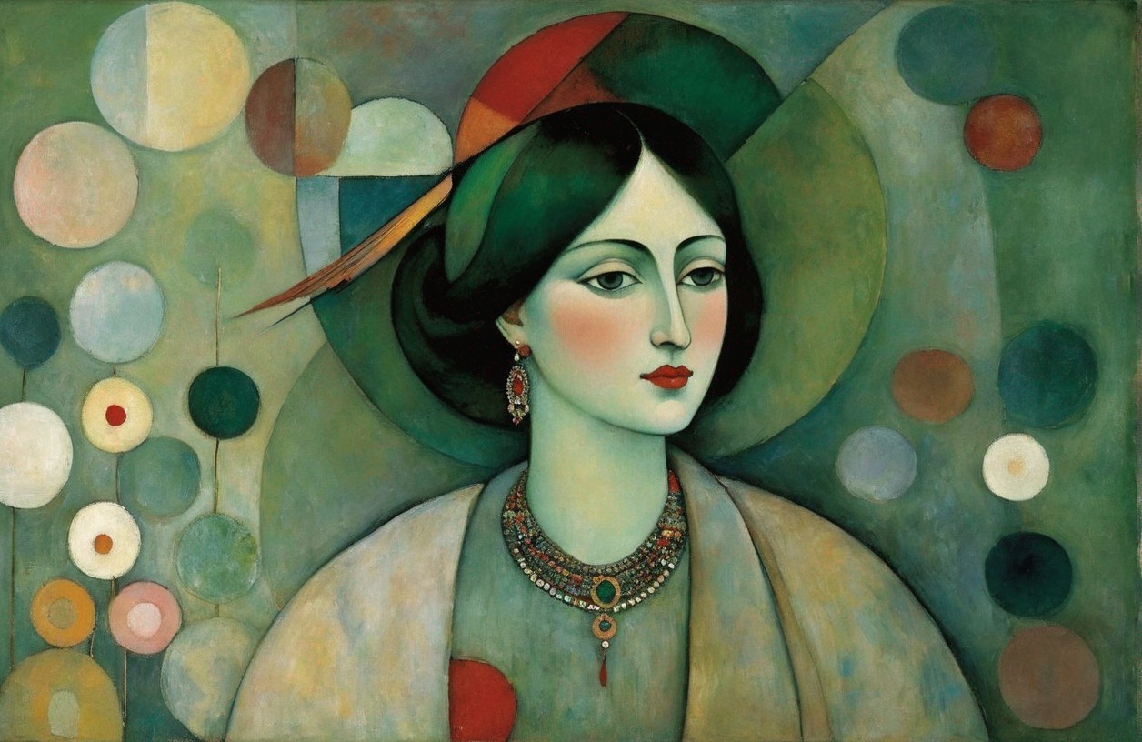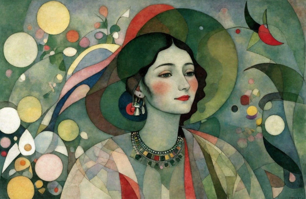 Beautiful woman Grayish-green, stone (light), red, bluish-green She had been born with a face that would let her get her way. She was beautiful in her own way, in the way her eyes shine and the way she smiles when she is sad. Cubism