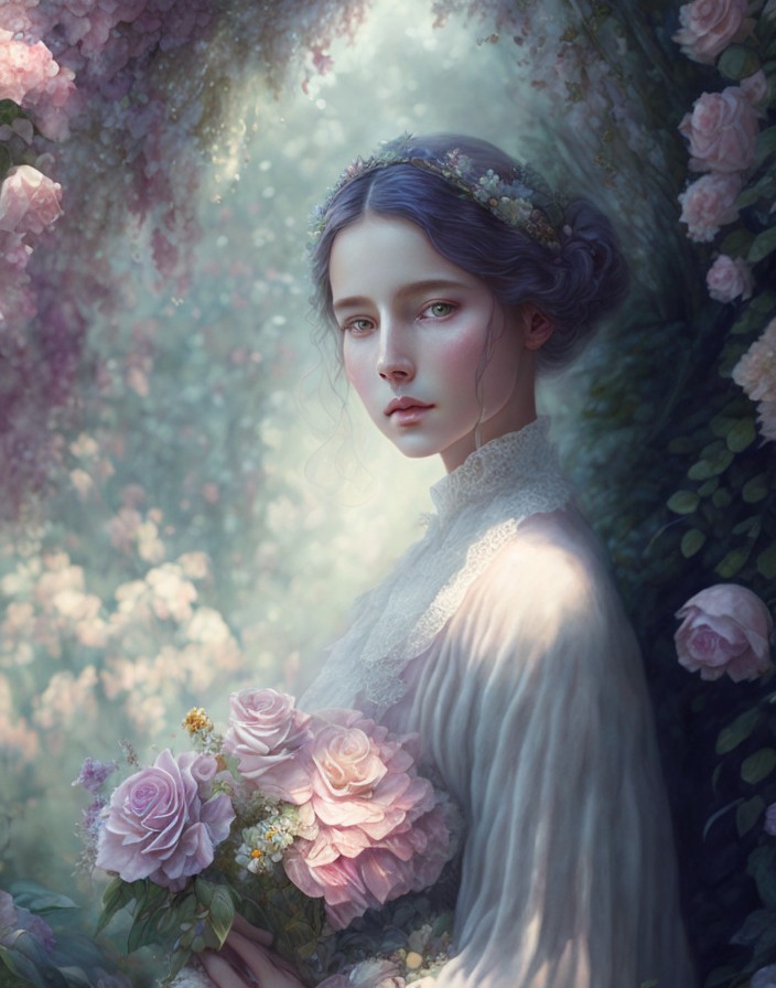 Prompt: "A beautiful super soft smudged foggy highly diffused watercolor pastels,art beautiful woman in a stunning secret garden beatrix potter and Ana sol hyperdetailed"