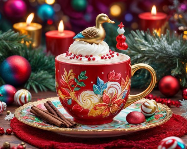 A vibrant scene showcases a woman in a rainbow-colored dress standing by the ocean, next to a jukebox, with a whimsical duck companion. The sunset casts a magical glow, enhancing the colors.