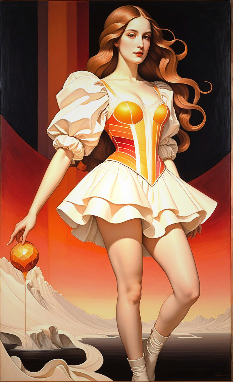 + Prompt:Witchcore portrait, geometric line art piece by Frederic Leighton with Hypotrochoid patterns, stylized full body portrait of a joyful and beautiful female witch in a simplistic and contoured lineage, illusion of flowing hair with sculpted bas-relief effects, incorporating warm colors and an extremely colorful palette. The design should include elements of watercolor and ink, with a touch of Juninocore reminiscence. Uhr, hdr, precise gelsculpt 64k, octane render, high plasticity, cel-shaded, shadow mapping 1.3, unique, pen and ink sketch by Jean-Claude Mezieres. Enchanting temptress with curly hair, tesselated, flowing hair illusion, whimsical trees with branches and detailed bark, aquarelle extrusion, reminiscent of Dee Nickerson, watercolor and ink, pen and ink style by Xuan Loc Xuan, highly detailed, ethereal dreamscape, stylized fusion of comic book art styles,stylized mystical realms, intricate ckodrop, watercolor details, reminiscent of Voronoi diagrams, warm pastel hues, dreamy,sfumato, intricate stylized patterns, delicate rim lighting,luminous, enchanting lighting effects, fantastical dream world setting, high-resolution artwork, american gothic, high contrasting colors, plasticity 1.3, imaginative realism, blurred portrait with intricate line art, dripping details, tall and lean shapes with tessellated, sculpted, cel-shaded, stippled, and blotted textures. Incorporating 3D effects, depth, and bokeh, creating a unique and quaint aesthetic. Hues inspired by Malcolm Liepke and tints reminiscent of Ho Baron, illuminated by Turner's light. The background features color shapes in a watercolor and ink shabby chic vintage style with patina effects like Verdigris, Copper, Mercury glass, Rust, Ochre, metallic-honey, Crimson red, and Burnt orange. reminiscent of space age style, high coloring, dethereal atmosphere, bold strokes, sculpted, 64K, modern cheerful art, detailed features, captivating lighting, enhancing the dusky ambiance, parallax occlusion 1.2, flowing,