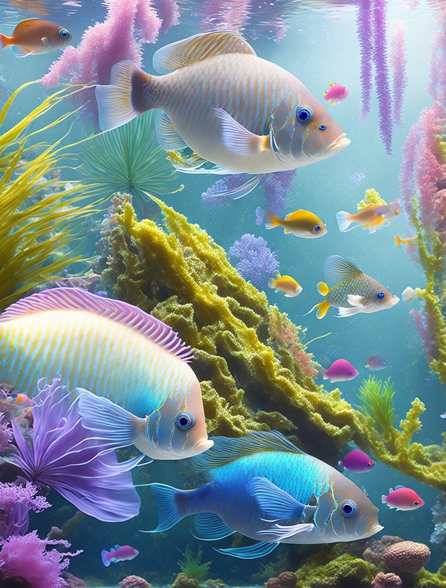 Colorful Coral Reef and Tropical Fish in Vibrant Underwater Scene