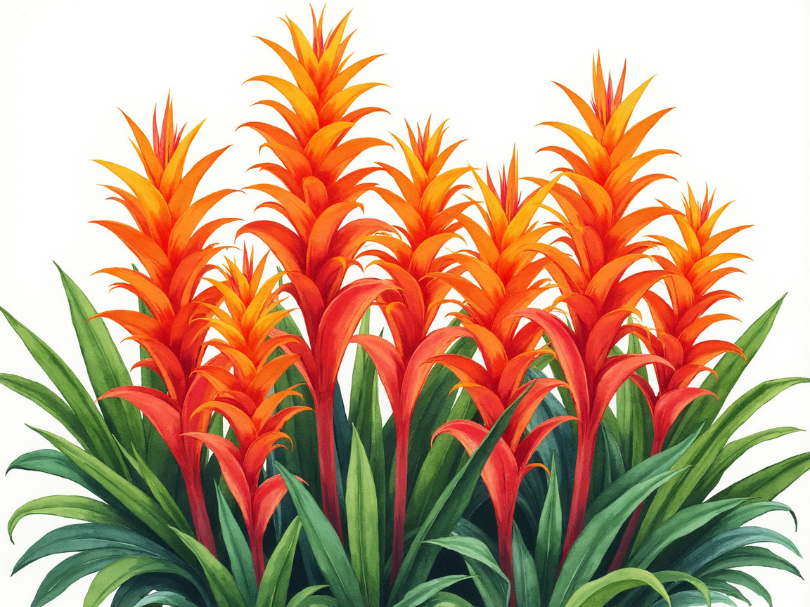 A vibrant painting of orange tropical flowers, surrounded by lush green leaves and set against a purple background.