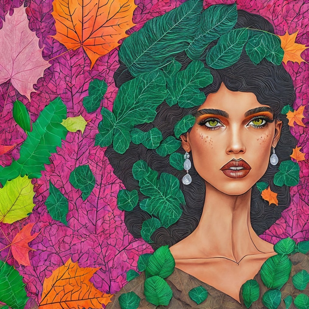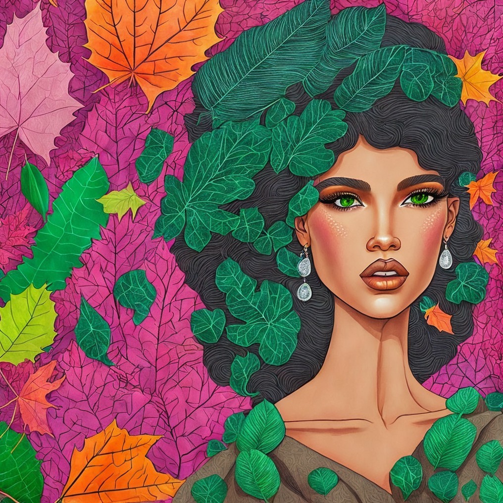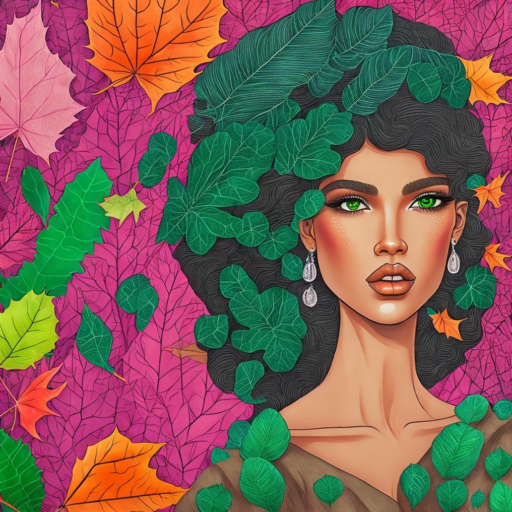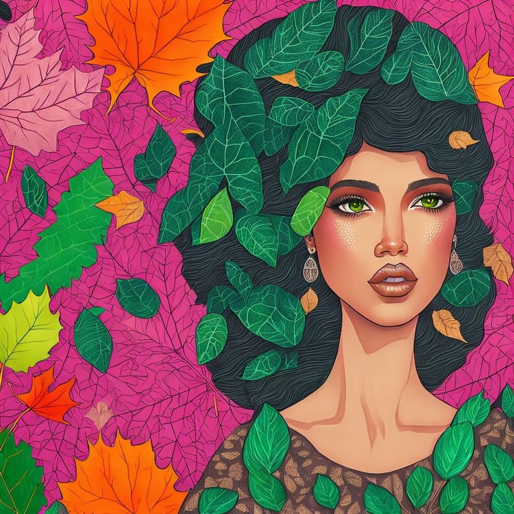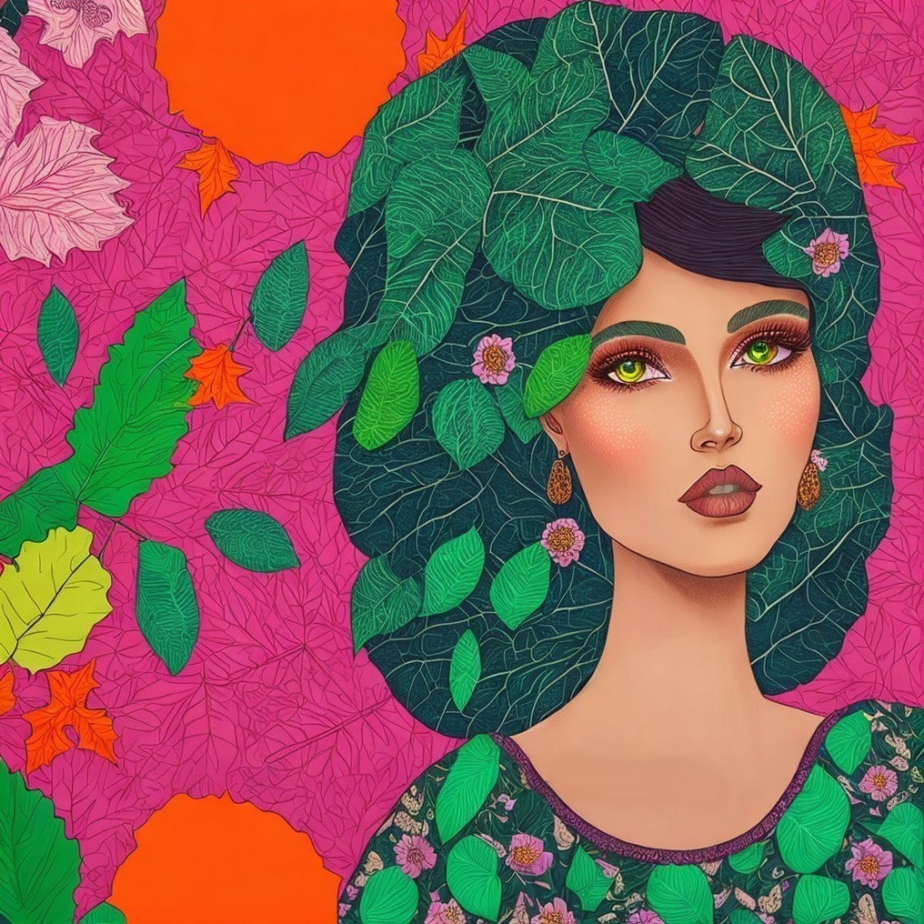 Artistic Statement: The fluid lines inspired by Art Nouveau and the bold contrasts of autumn amplify the duality between growth and decadence, obsession and detachment. The composition remains surreal and carries a deliberate irony: Marilou now literally has a « tête de chou » instead of the male narrator of Gainsbourg's songs in the album.